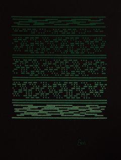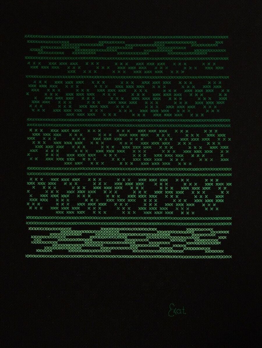 父親がいなくなって以来、心の空洞を埋めるために始めた刺繍の、モールス信号をテーマにしたシリーズ。「SOS」と「愛しのプーシキン」。タイトルからもエカテリナの思いが読み取れる