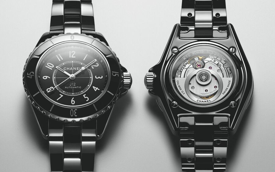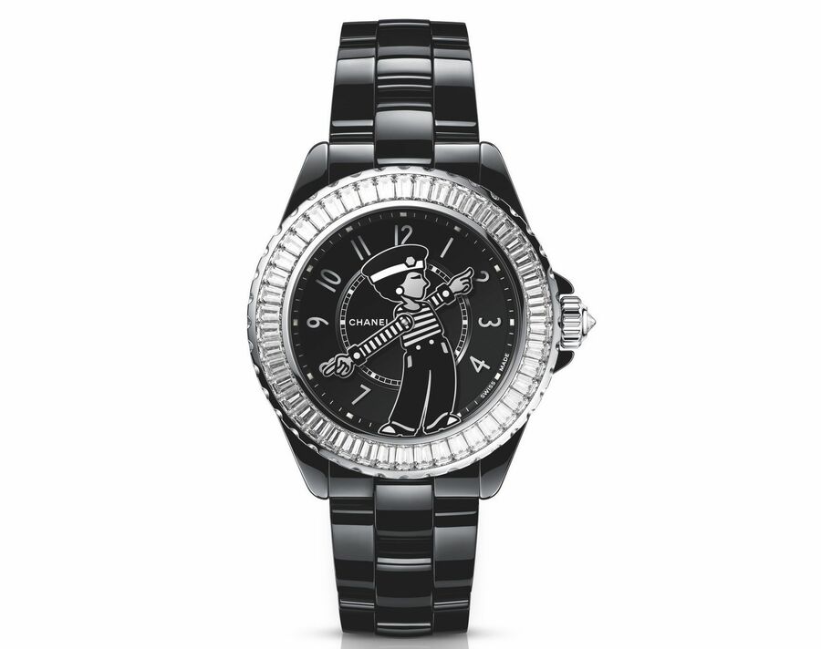 55本限定!シャネルが誇る技術とデザイン力が融合した腕時計『J12』の新作 『J12 キャリバー 12.2』 自動巻き(Cal.12.2)、高耐性セラミックケース、33㎜径、86万3500円 (画像1/5) 『J12 ダイヤモンド トゥールビヨン』 ベゼルにバゲットカットのダイヤモンド34個(3.5ct)、リューズにブリリアントカットのダイヤモンド1個(0.15ct)、そして、トゥールビヨンには、センターにダイヤモンド1個(0.18ct)、ケージに26個(0.06ct)がセッティングされている。手巻き(Cal.5)、高耐性セラミックケース×18Kホワイトゴールド、38㎜径、2244万円(世界55本限定) (画像2/5) 『マドモアゼル J12 ラ パウザ』 ベゼルにバゲットカットのダイヤモンド46個、リューズにダイヤモンド1個がセットされている。自動巻き(Cal.12.1)、高耐性セラミック×18Kホワイトゴールドケース、38㎜径、1496万円(世界55本限定) (画像3/5) 『マドモアゼル J12・XS』 ココモチーフにダイヤモンド1個、リューズにダイヤモンド1個、ブレスレットにブリリアントカットのダイヤモンド116個、ダイヤルフランジにバケットカットのダイヤモンドが24個セットされている。クォーツ、高耐性セラミック×18Kホワイトゴールドケース、19㎜径、622万6000円(世界55本限定) (画像4/5) 『J12 ガブリエル キャリバー3.1』 ベゼルにバケットカットダイヤモンド46個、リューズにダイヤモンド1個がセットされている。手巻き(Cal.3.1)、高耐性セラミック×18Kホワイトゴールドケース、38㎜径、3487万円(世界55本限定) (画像5/5) 55本限定!シャネルが誇る技術とデザイン力が融合した腕時計『J12』の新作 この写真の記事を読む