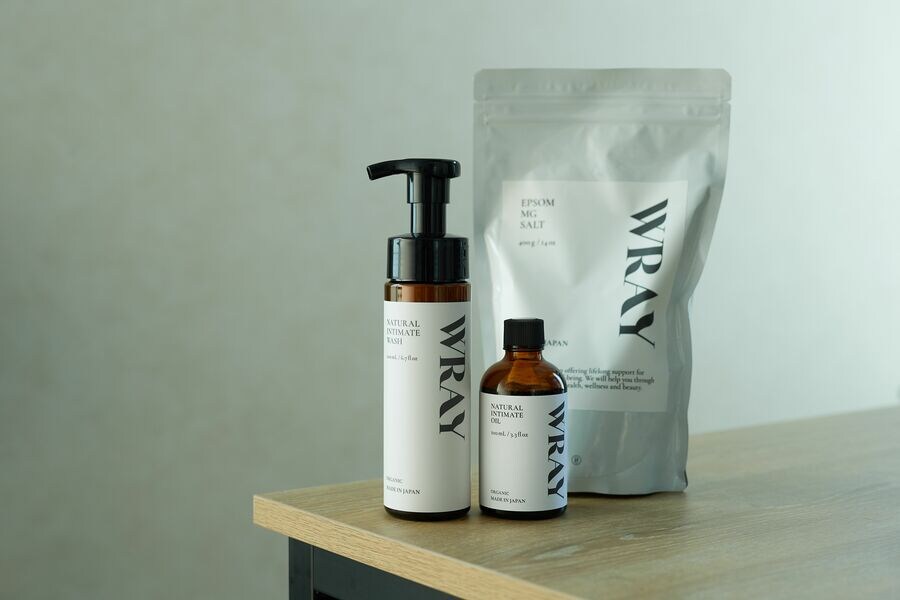 (左)泡で出るオーガニックデリケートゾーン用ソープ。(ナチュラルインティメイトウォッシュ ¥2,910)(中)100%天然由来成分のオーガニックデリケートゾーンオイル。(ナチュラルインティメイトオイル ¥4,600)(右)バスタイムで体を芯から温め、保湿効果もあるバスソルト。(エプソマグソルト ¥3,500)