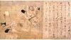 大力できこえた武蔵の武士・御田師重に組み付き、馬から引きずり下ろし、師重の息の根をとめる巴御前(画:蔀関月・東京国立博物館所蔵)