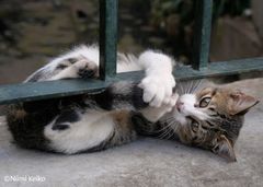 背後からもう一匹が急襲!ブルガリアの仲良し兄弟猫