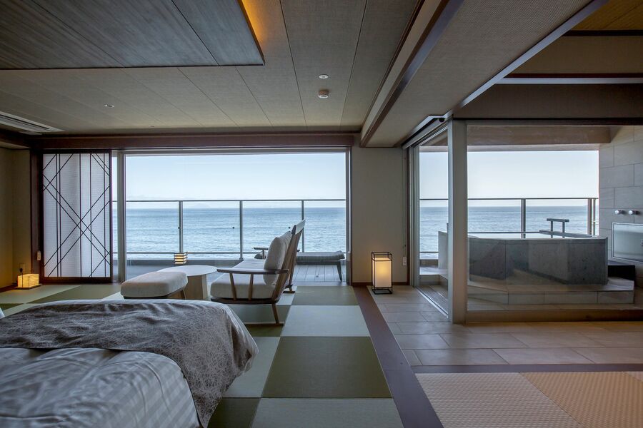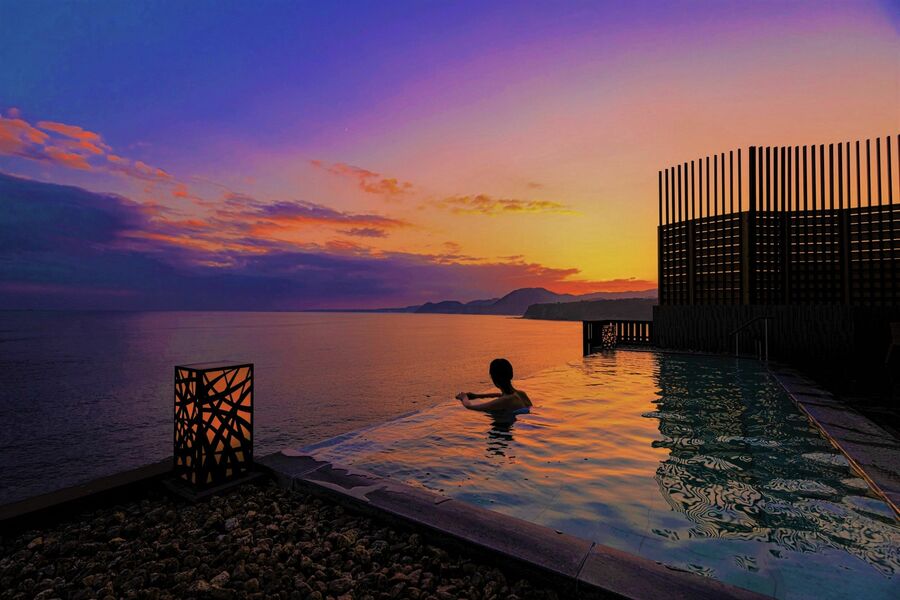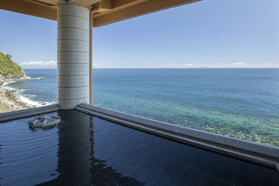 海と一体になる!伊豆東海岸・いなとり荘の“インフィニティ”露天風呂 海を貸し切る客室専用の露天風呂。時間帯ごとの景色に感動する (画像1/10) 海と一体になる露天風呂は最高の開放感 (画像2/10) もうひとつの大浴場に併設する露天風呂も眺望抜群 (画像3/10) 温泉掛け流しの露天風呂が付いたスイートは広々とした上質空間 (画像4/10) 「露天風呂付き客室から予約が埋まる」と話す副支配人の藤城智之さん。絶景の特別感に加えて、昨今は安心感とプライベート感がより好まれる。 (画像5/10) エグゼクティブ客室の夕食は、個室の食事処での会席料理 (画像6/10) エグゼクティブ客室の朝食は、個室食事処で海を眺めながらの和食膳 (画像7/10) 潮騒と満天の星空が出迎える夜の露天風呂も究極の癒しだ (画像8/10) 予約制の貸し切り露天風呂(有料)は3タイプを用意する (画像9/10) 心まで空の色に染まりそうな大パノラマの露天風呂 (画像10/10) 海と一体になる!伊豆東海岸・いなとり荘の“インフィニティ”露天風呂 この写真の記事を読む