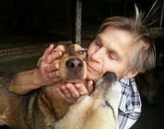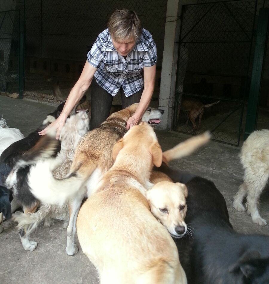 激戦地となったウクライナのホストメリで動物のシェルターを運営するアーシャさん(2012年10月撮影、息子のシュマトクさん提供)