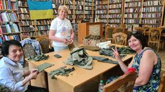 戦争で心に傷を負ったウクライナの子供を癒すのは意外にも「シリアスな童話」 絵本カードを作ったハリナさん(筆者撮影) (画像1/6) 図書館はカモフラージュ・ネット工場として使われていた(筆者撮影) (画像2/6) ダークグリーンに染められた布をリボンに裁断するボランティア男性(筆者撮影) (画像3/6) Vサインを見せる女性ボランティア(筆者撮影) (画像4/6) 図書館の一室がイザという場合に防空壕として使われる(筆者撮影) (画像5/6) 目のくぼみが目立つオクサナさん(左)とアプテムさん(筆者撮影) (画像6/6) 戦争で心に傷を負ったウクライナの子供を癒すのは意外にも「シリアスな童話」 この写真の記事を読む