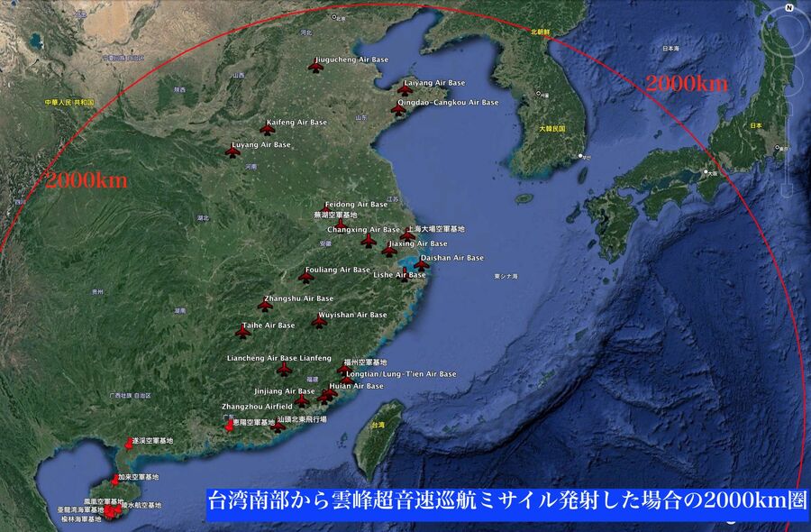 雲峰ミサイルの射程圏