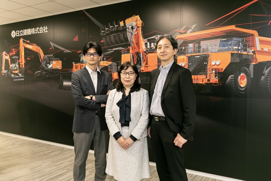 左が日立建機日本 マーケティング戦略統括部 部長代理 阿部聡司氏、右が日立建機 DX推進本部 DX改革統括部 統括部長 龍尾信哉氏。中央が日立建機 DX推進本部 副本部長の桃木典子氏