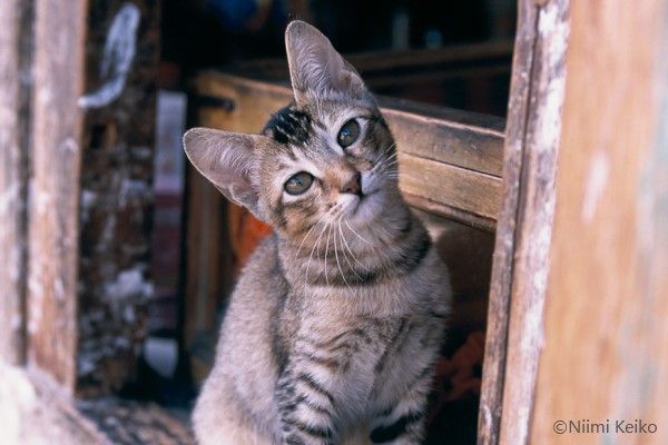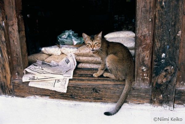 窓の外を見る猫、シッポが蒸しパンにさわってますけど!?