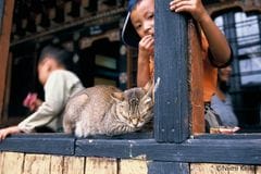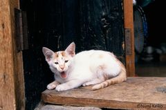 猫の出入り口に表札があるデンマークの町ドラウエア