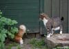 猫の出入り口に表札があるデンマークの町ドラウエア