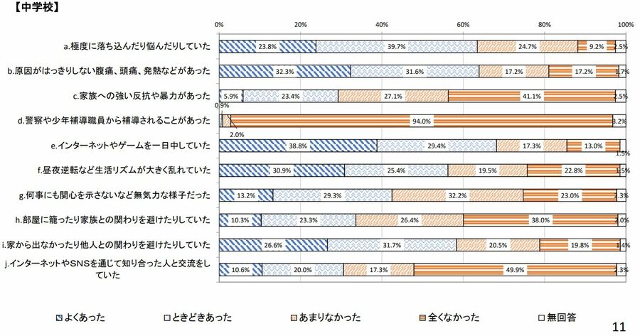 【図1】保護者から見た欠席時の子どもの状況<中学生>(出典:令和2年度不登校児童生徒の実態調査 結果の概要ー-文部科学省 https://www.mext.go.jp/content/20211006-mxt_jidou02-000018318-2.pdf