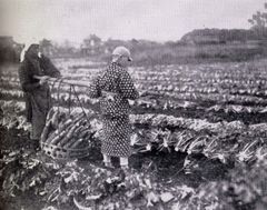 練馬大根の採り入れ風景(昭和10年代)、練馬区の「練馬わがまち資料館」ホームページより