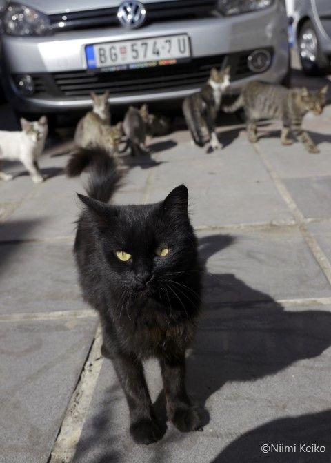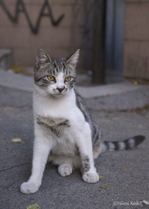 三毛猫との間に割って入ってきたまっ白のオス猫、お母さんを守ろうとした?