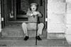 天皇の死を悲しむ男性。彼は長い間座り続けた(写真:橋本 昇)