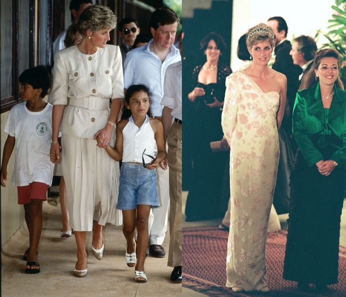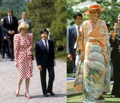 1986年5月9日、来日時のダイアナ妃 左・写真=Press Association/アフロ 右・写真=Shutterstock/アフロ