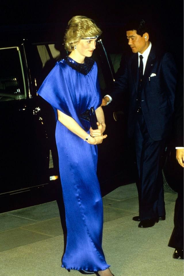 1986年の第一回目の公式訪問。5月8日から6日間に及んだ滞在の最終日に行われた、宮中晩餐会でのダイアナ妃 写真=Shutterstock/アフロ