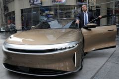 米ルーシッド・モータースのCEO兼CTOのピーター・ローリンソン氏と、同社のラグジュアリーEV「ルーシッド・エア」。ローリンソン氏は元テスラのエンジニアだ(写真:ロイター/アフロ)