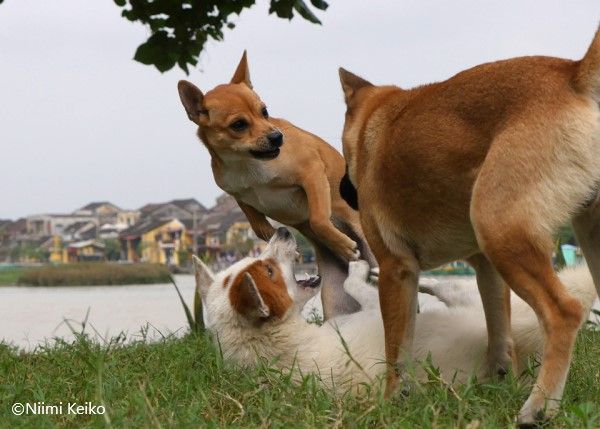 リトアニアの三毛と白、2匹のメス猫が赤いアウディを取り合う