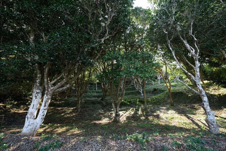 島の土地の80%を占める椿林