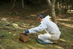 椿油の元となる実を集める椿農家の方。
