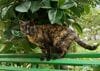 柵の向こうからふいに現れたサビ猫、シッポを振って毛並みをアピール