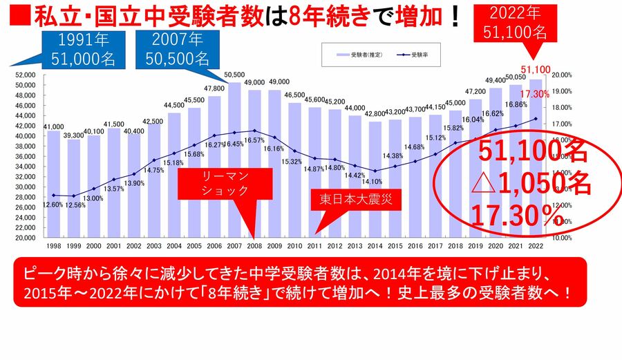 首都圏の私立・国立中学受験者数の推定(出所:首都圏模試センター)