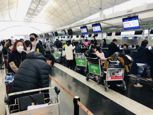 旅客でごった返す香港空港の出発ロビー(筆者撮影)