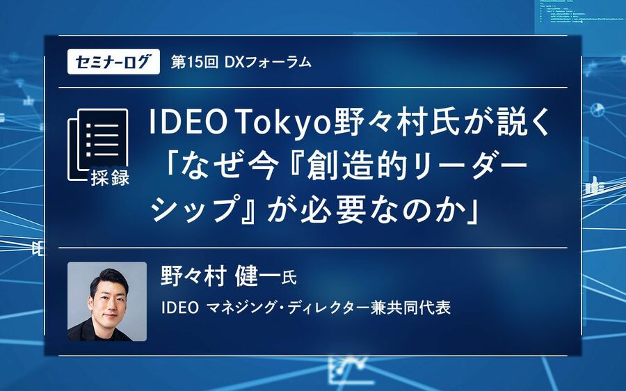 IDEO Tokyo野々村氏が説く「なぜ今『創造的リーダーシップ』が必要なのか」 (画像1/3) 拡大画像表示 (画像2/3) 拡大画像表示 (画像3/3) IDEO Tokyo野々村氏が説く「なぜ今『創造的リーダーシップ』が必要なのか」 この写真の記事を読む