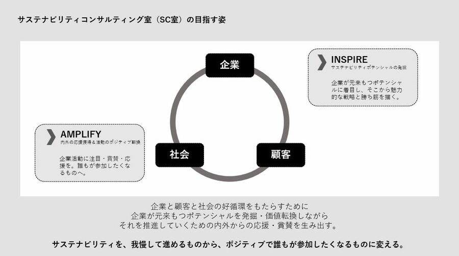 電通グループのサステナビリティコンサルティングは何が違うのか? 電通 サステナビリティコンサルティング室 FCC(Future Creative Center)部長 吉羽 優子氏(左) コンサルティング2部 シニアDXディレクター 三笘 亜樹氏(右) (画像1/9) サステナビリティの取り組みが変わらない・動かない理由 拡大画像表示 (画像2/9) サステナビリティコンサルティング室 FCC(Future Creative Center)部長 吉羽 優子氏 (画像3/9) サステナビリティコンサルティング室 コンサルティング2部 シニアDXディレクター 三笘 亜樹氏 (画像4/9) サステナビリティコンサルティング室の目指す姿 拡大画像表示 (画像5/9) サステナビリティコンサルティング室のソリューション群 拡大画像表示 (画像6/9) サステナビリティコンサルティング室のソリューションツール例 拡大画像表示 (画像7/9) (画像8/9) (画像9/9) 電通グループのサステナビリティコンサルティングは何が違うのか? この写真の記事を読む