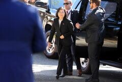 米カリフォルニア州ロサンゼルス近郊のロナルド・レーガン大統領図書館に到着した台湾の蔡英文総統(2023年4月5日、写真:ロイター/アフロ)