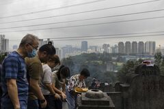 4月5日の清明節には香港でも多くの家族が先祖の墓参りに行く姿が見られた(写真:AP/アフロ)
