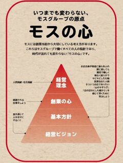 モスグループは創業以来「人間貢献・社会貢献」という経営理念のもと、「食を通じて人を幸せにすること」という経営ビジョンを掲げている