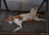 タビー模様の猫は熱くなった体を冷やすため、「猫の開き」のような姿に