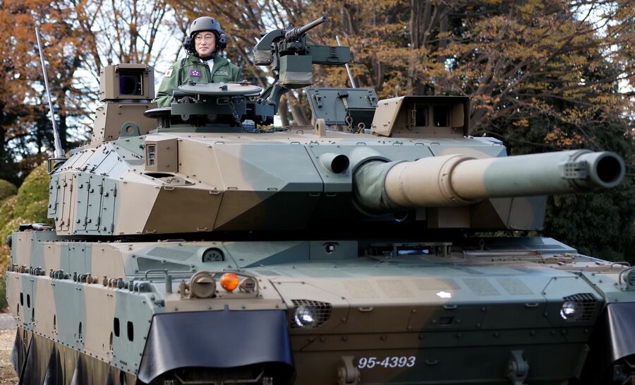 岸田文雄首相は防衛費を2027年度にGDP比2%に増額することを決めた。写真は2021年11月の自衛隊観閲式で10式戦車に搭乗した岸田首相(写真:代表撮影/ロイター/アフロ)