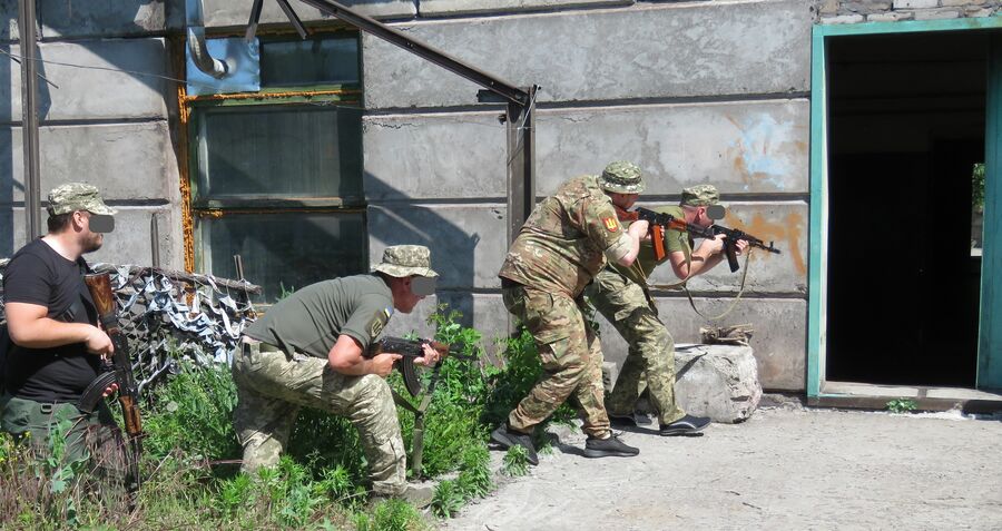 最前線の隠れた戦力、おなかポッコリ中年兵たちの「ウクライナ領土防衛隊」 領土防衛隊の突撃訓練(筆者撮影、兵士の安全のため顔は隠しています) (画像1/6) 建物内に逃げ込んだ敵を掃討する突撃隊(同) (画像2/6) 自分の郷土、国は自分たちで守るしかないと突撃訓練を受ける市民(同) (画像3/6) 和気あいあいムードのミーティング(同) (画像4/6) 領土防衛隊のインストラクター役を務めるウクライナ軍のユーリー(筆者撮影) (画像5/6) チームで動く。スタンドプレーは自分と仲間の命を危険にさらす(筆者撮影、兵士の安全のため顔は隠しています) (画像6/6) 最前線の隠れた戦力、おなかポッコリ中年兵たちの「ウクライナ領土防衛隊」 この写真の記事を読む