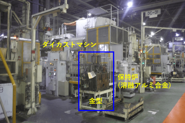 【キャプション】ダイカスト設備と金型。1999年導入(写真提供:豊田自動織機)