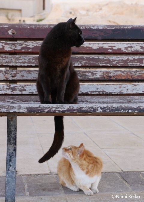国がまるごと「猫島」のマルタで暮らす猫、「ドアを開けてくれ」と頼まれた 一瞬黒猫に見えたきれいなサビ猫が近づいてきて、顔を覗き込んでくれた そっくりなキジトラ猫がもう一匹、かと思ったらもう一匹、君たち3姉妹? タビー模様の猫は熱くなった体を冷やすため、「猫の開き」のような姿に 「あなたメインクーンでしょ?」「そうだよ」とこちらをじっと見てくれた猫