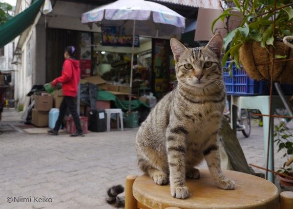 ハンモックで寝ていた猫、寝返りで体がずれて目が覚めてしまった
