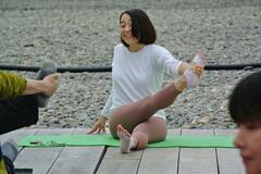 イベント参加者は保志さんの昆布浜で約1時間のヨガも体験。講師は角畠あさみさん(筆者撮影)