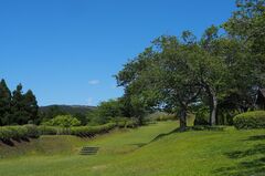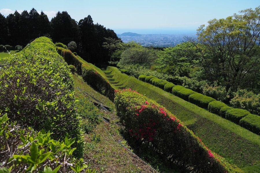 出丸の土塁上からは三島市街と駿河湾が眺められる