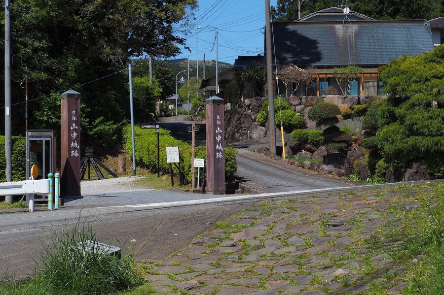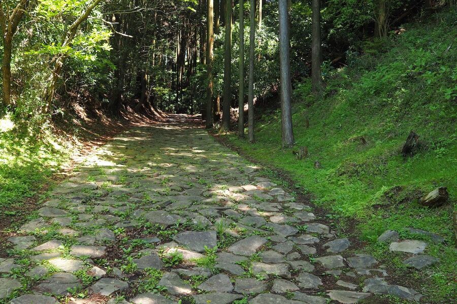 山中城に向かう古街道(石畳は後世のもの)。豊臣軍主力はこの道を通って城に攻め寄せた