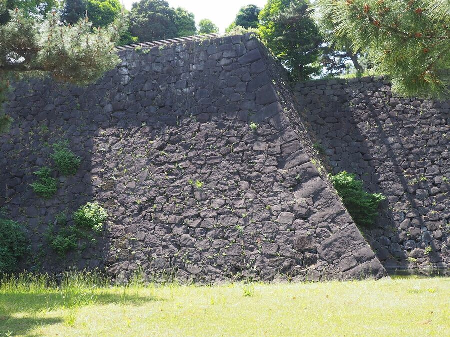 江戸城本丸の高石垣。技法から見て家康時代の石垣であろう