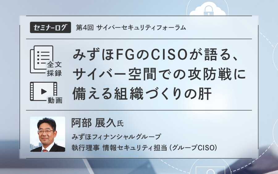 みずほFGのCISOが語る、サイバー空間での攻防戦に備える組織づくりの肝 (画像1/12) 拡大画像表示 (画像2/12) 拡大画像表示 (画像3/12) 拡大画像表示 (画像4/12) 拡大画像表示 (画像5/12) 拡大画像表示 (画像6/12) 拡大画像表示 (画像7/12) 拡大画像表示 (画像8/12) 拡大画像表示 (画像9/12) 拡大画像表示 (画像10/12) 拡大画像表示 (画像11/12) 拡大画像表示 (画像12/12) みずほFGのCISOが語る、サイバー空間での攻防戦に備える組織づくりの肝 この写真の記事を読む