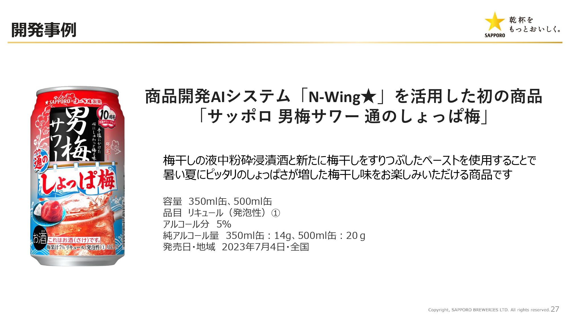 サッポロビールのRTD開発システム「N-Wing★」がもたらした驚くべき変化 (画像1/10) 拡大画像表示 (画像2/10) 拡大画像表示 (画像3/10) 拡大画像表示 (画像4/10) 拡大画像表示 (画像5/10) 拡大画像表示 (画像6/10) 拡大画像表示 (画像7/10) 拡大画像表示 (画像8/10) 拡大画像表示 (画像9/10) 拡大画像表示 (画像10/10) サッポロビールのRTD開発システム「N-Wing★」がもたらした驚くべき変化 この写真の記事を読む