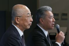 2024年大胆予想!ダイハツ不正で自動車業界が大再編へ、スズキとホンダが焦点 ダイハツの不正が業界再編の引き金に?(写真:共同通信社) (画像1/7) 記者会見するダイハツ工業の奥平総一郎社長(左)とトヨタ自動車の中嶋裕樹副社長(写真:共同通信社) (画像2/7) トヨタ自動車の豊田章男会長(写真:共同通信社) (画像3/7) スズキの鈴木修相談役、写真は2021年の会長退任会見(写真;共同通信社) (画像4/7) ホンダ新型N-BOX発表会=2023年10月(写真:日刊工業新聞/共同通信イメージズ) (画像5/7) ホンダの三部敏宏社長(写真:WireImage/ゲッティ/共同通信イメージズ) (画像6/7) 日産自動車と三菱自動車が共同開発した軽の電気自動車、日産の「サクラ」(左)と三菱自の「ekクロスEV」(写真:共同通信社) (画像7/7) 2024年大胆予想!ダイハツ不正で自動車業界が大再編へ、スズキとホンダが焦点 この写真の記事を読む