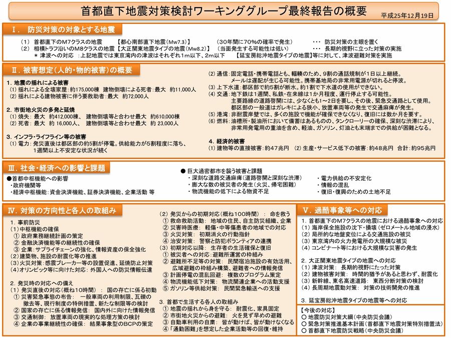 能登半島地震が再度突きつけた重い課題、政府は非常時の資金調達力を保てるか 能登半島地震では多くの家屋が倒壊するなど、住民の生活基盤が失われた(写真:共同通信社) (画像1/4) 1月14日、能登半島地震の被災地を訪問し、石川県庁で記者会見する岸田文雄首相(代表撮影)。政府は16日に2024年度予算案を再編成し予備費を5000億円から1兆円に倍増した(写真:共同通信社) (画像2/4) 首都直下地震対策検討ワーキンググループ最終報告の概要(出所:内閣府) 拡大画像表示 (画像3/4) 南海トラフ巨大地震対策についての最終報告概要(出所:内閣府) 拡大画像表示 (画像4/4) 能登半島地震が再度突きつけた重い課題、政府は非常時の資金調達力を保てるか この写真の記事を読む
