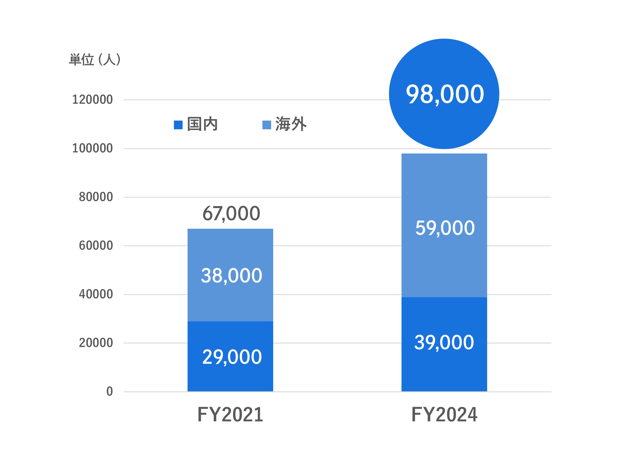 成長戦略の要となるデジタル人材を、海外を中心に9万8000人に強化