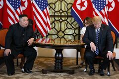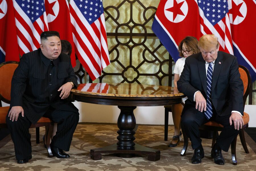 2019年2月28日、ハノイで会談するトランプ米大統領(右・当時)と北朝鮮の金正恩氏(写真:AP/アフロ)