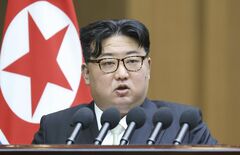 北朝鮮の最高人民会議に臨む金正恩朝鮮労働党総書記。「南北統一」の目標を放棄し、韓国を「第1の敵国」と定めるべきと述べた=1月15日、平壌(写真:朝鮮中央通信=共同)