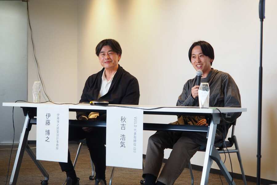 一般の人のSNS投票で決める「みんなの建築大賞 2024」、大賞は建築系スタートアップVUILDによる「学ぶ、学び舎」 「みんなの建築大賞 2024」で大賞を受賞した「学ぶ、学び舎」(設計:VUILD、写真:歌津亮悟) (画像1/12) 発表会&授与式の様子。会場となった文化庁国立近現代建築資料館は定期的に企画展示を行っており、無料で鑑賞できる(写真:加藤純) (画像2/12) 「推薦委員会ベスト1」に選ばれた「天神町place」(設計:伊藤博之建築設計事務所、写真:歌津亮悟) (画像3/12) 内側から見た 「学ぶ、学び舎」。Explaygroundでは「HIVE」とも呼ばれる(写真:市川紘司) (画像4/12) マイクを手にプレゼンテーションを行う秋吉浩気氏。その後ろに座っているのが「天神町place」を設計した伊藤博之氏。手前から、みんなの建築大賞推薦委員会委員長で東北大学大学院教授の五十嵐太郎氏、文化庁企画調整課長・国立近現代建築資料館館長の寺本恒昌氏(写真:森清) (画像5/12) 「学ぶ、学び舎」外観全景(写真:歌津亮悟) (画像6/12) 「天神町place」の道路側外観。くるりと巻かれた建物の両端が現れる。その隙間から中庭に入る(写真:宮沢洋) (画像7/12) 「天神町place」の中庭から上空を見上げたところ。建物の形がよく分かる(写真:歌津亮悟) (画像8/12) 上階から中庭を見る。ところどころにある「横穴」から建物の向こう側の景色が垣間見える(写真:宮沢洋) (画像9/12) 登録有形文化財の「花重」店舗。創業150年を超える(写真:和田菜穂子) (画像10/12) 庭側から見た全景。手前の鉄骨フレームが新設部分(写真:Takuya Seki) (画像11/12) 会場からの質問に答える秋吉浩気氏(右)と伊藤博之氏(写真:加藤純) (画像12/12) 一般の人のSNS投票で決める「みんなの建築大賞 2024」、大賞は建築系スタートアップVUILDによる「学ぶ、学び舎」 この写真の記事を読む