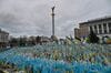 《ウクライナ写真ルポ》戦死者を示す旗が独立広場に増え続ける首都キーウ 王女の像にも防弾ベスト